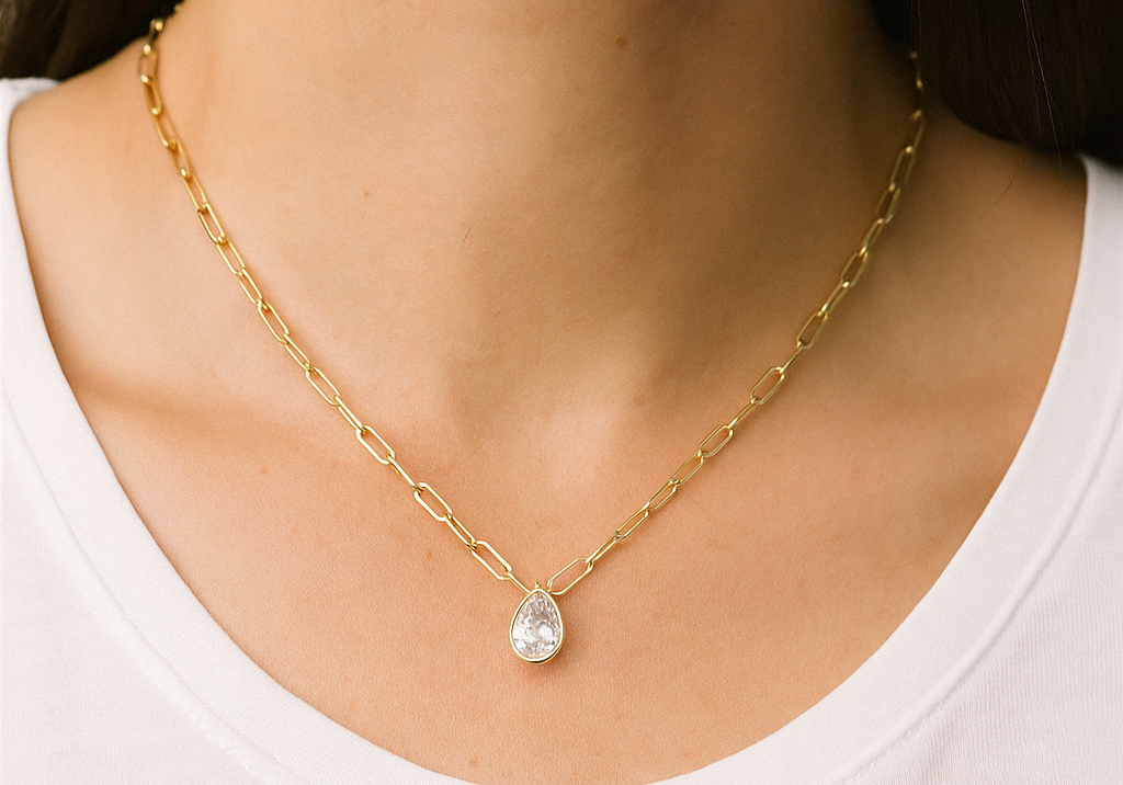 Pear Bezel Paperclip - 1.00 CT (North-South)