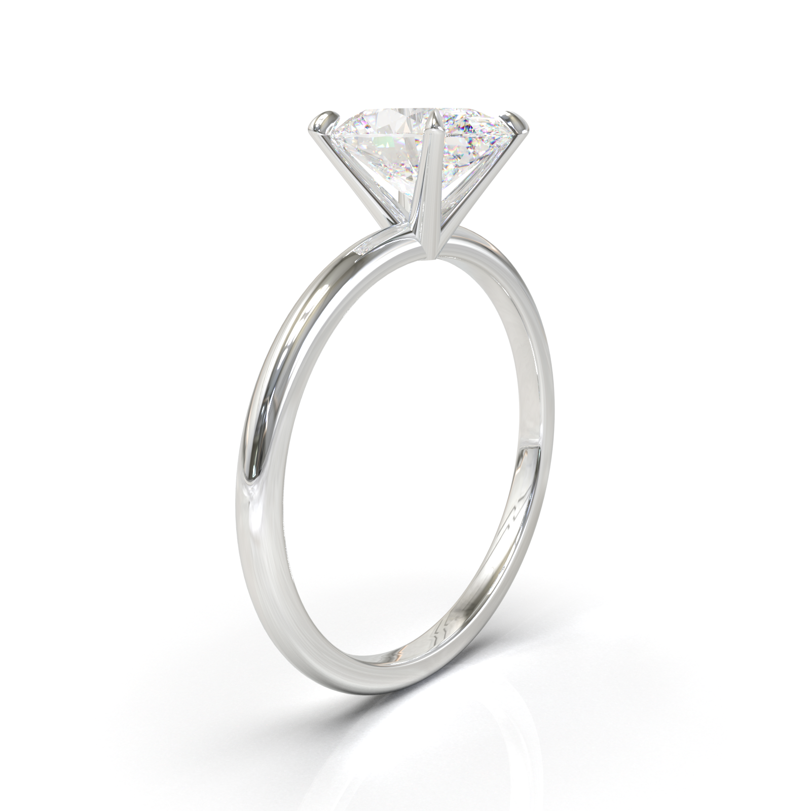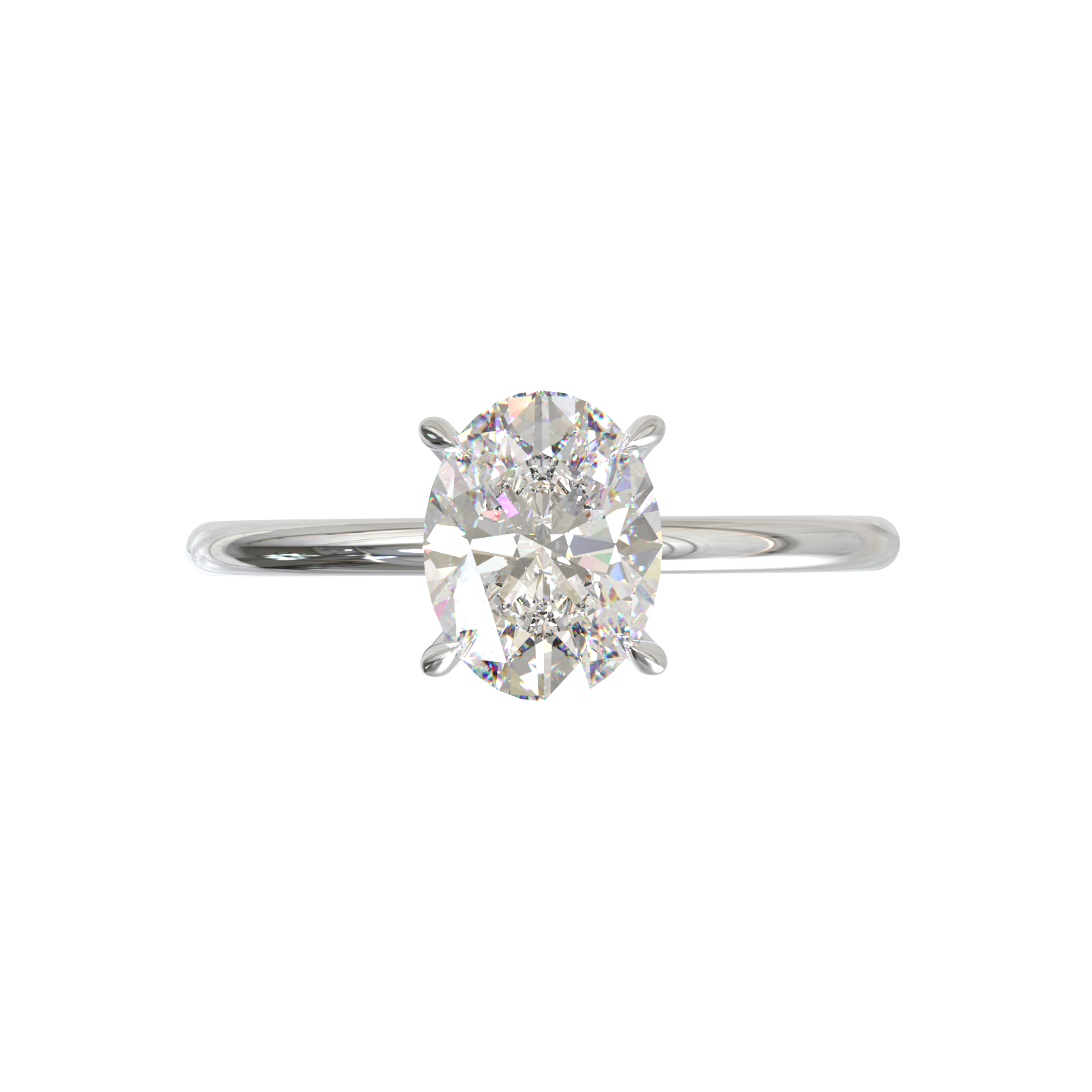 The solitaire engagement ring dazzles with its classic shape and minimalist design in which the central diamond is the main protagonist. This ring features a 1.5mm thick band in 14K white gold on which rests a 1 ct oval cut central diamond.