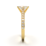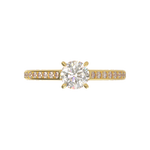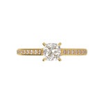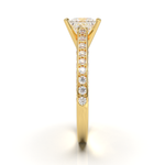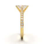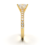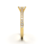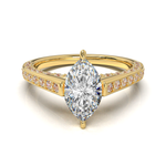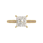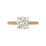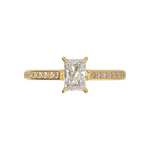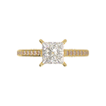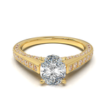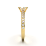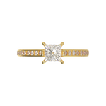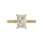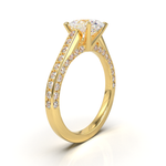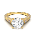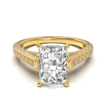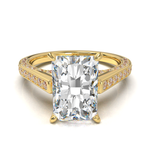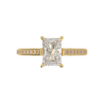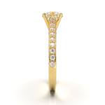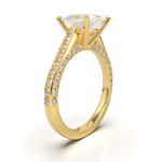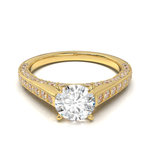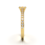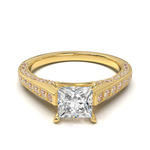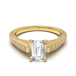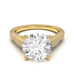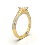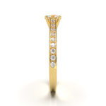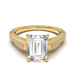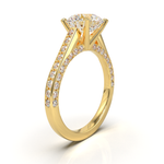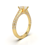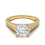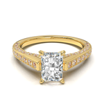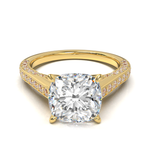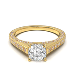 Disfruta del resplandor con nuestro anillo de compromiso estilo catedral con triple pavé (en parte superior y lateral de alianza) de 0.01 con 4 uñas. Disponible en oro de 14k o 18k en tonos amarillo, blanco o rosa, esta montura es la perfecta representación de brillo y majestuosidad. Hecho a mano, su tiempo de fabricación es de 4 a 6 semanas, asegurando la calidad y detalle en cada pieza. (El precio reflejado es por la montura elegida y no incluye el diamante central)