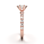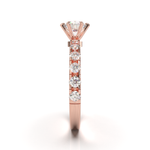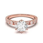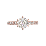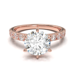 Disfruta del resplandor con nuestro anillo de compromiso estilo Tiffany con pavé de 0.03. Disponible en oro de 14k o 18k en tonos amarillo, blanco o rosa, esta montura es la perfecta mezcla de algo clásico con un toque de brillo. Hecho a mano, su tiempo de fabricación es de 4 a 6 semanas, asegurando la calidad y detalle en cada pieza. (El precio reflejado es por la montura elegida y no incluye el diamante central)