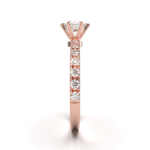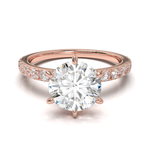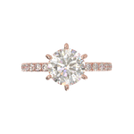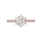 Disfruta del resplandor con nuestro anillo de compromiso estilo Tiffany con pavé de 0.02. Disponible en oro de 14k o 18k en tonos amarillo, blanco o rosa, esta montura es la perfecta mezcla de algo clásico con un toque de brillo. Hecho a mano, su tiempo de fabricación es de 4 a 6 semanas, asegurando la calidad y detalle en cada pieza. (El precio reflejado es por la montura elegida y no incluye el diamante central)