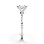 Disfruta del resplandor con nuestro anillo de compromiso estilo Tiffany con pavé de 0.01. Disponible en oro de 14k o 18k en tonos amarillo, blanco o rosa, esta montura es la perfecta mezcla de algo clásico con un toque de brillo. Hecho a mano, su tiempo de fabricación es de 4 a 6 semanas, asegurando la calidad y detalle en cada pieza. (El precio reflejado es por la montura elegida y no incluye el diamante central)