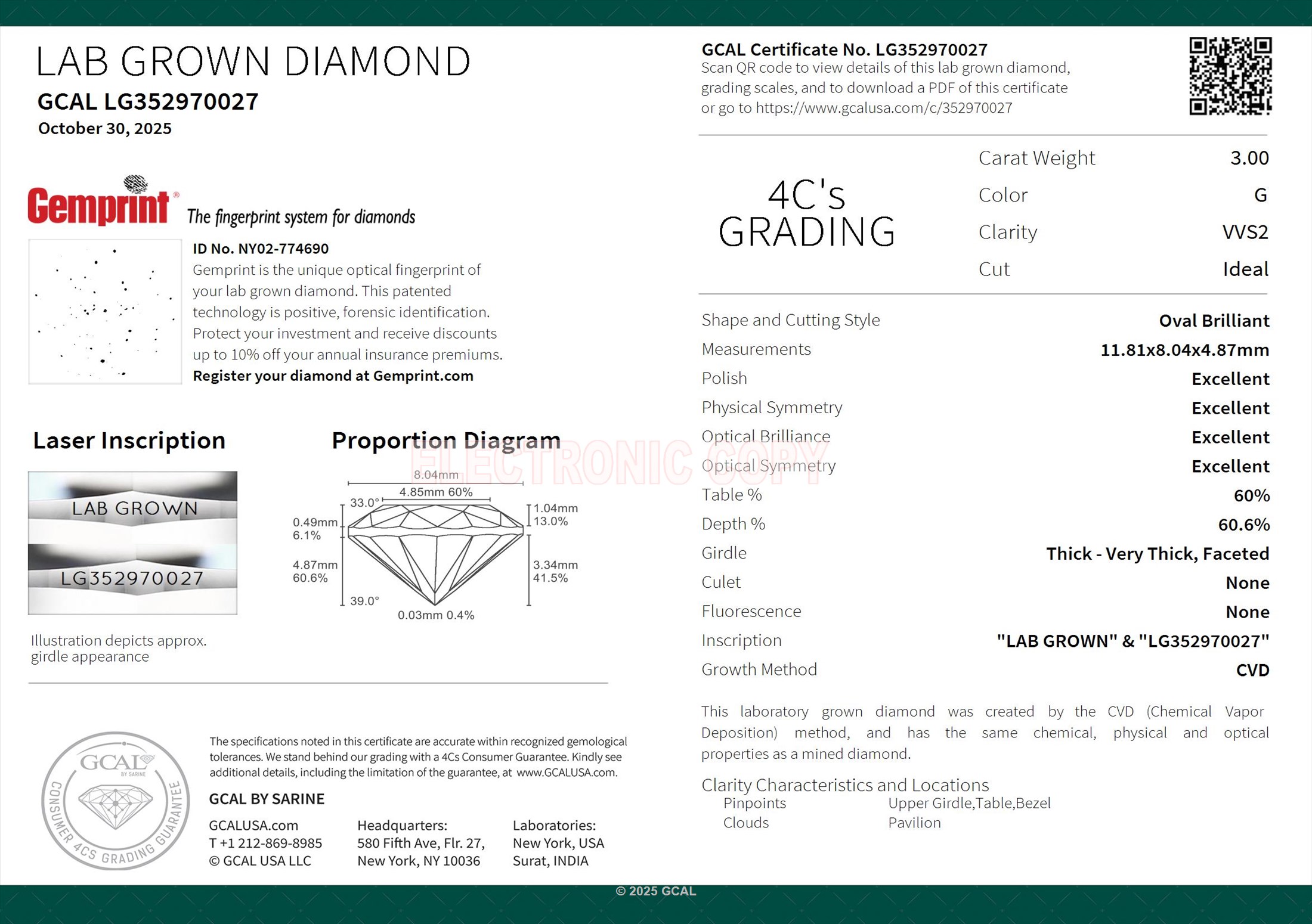 Bornmine 다이아몬드를 선택하면 우수한 가격에 우수한 품질의 다이아몬드를 선택하게 됩니다. 구매가 완료되면 귀하가 선택한 다이아몬드 예약이 진행되며, 최종 다이아몬드의 사양은 재고 상황에 따라 약간 다를 수 있으며, 이 경우 연락을 드릴 것입니다.