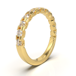 Churumbela con diamantes de laboratorio redondos montados con un diseño innovador en "u" que hace que luzca con más sutileza los diamantes por los bordes. Disponible en oro blanco, amarillo y rosado de 14K.