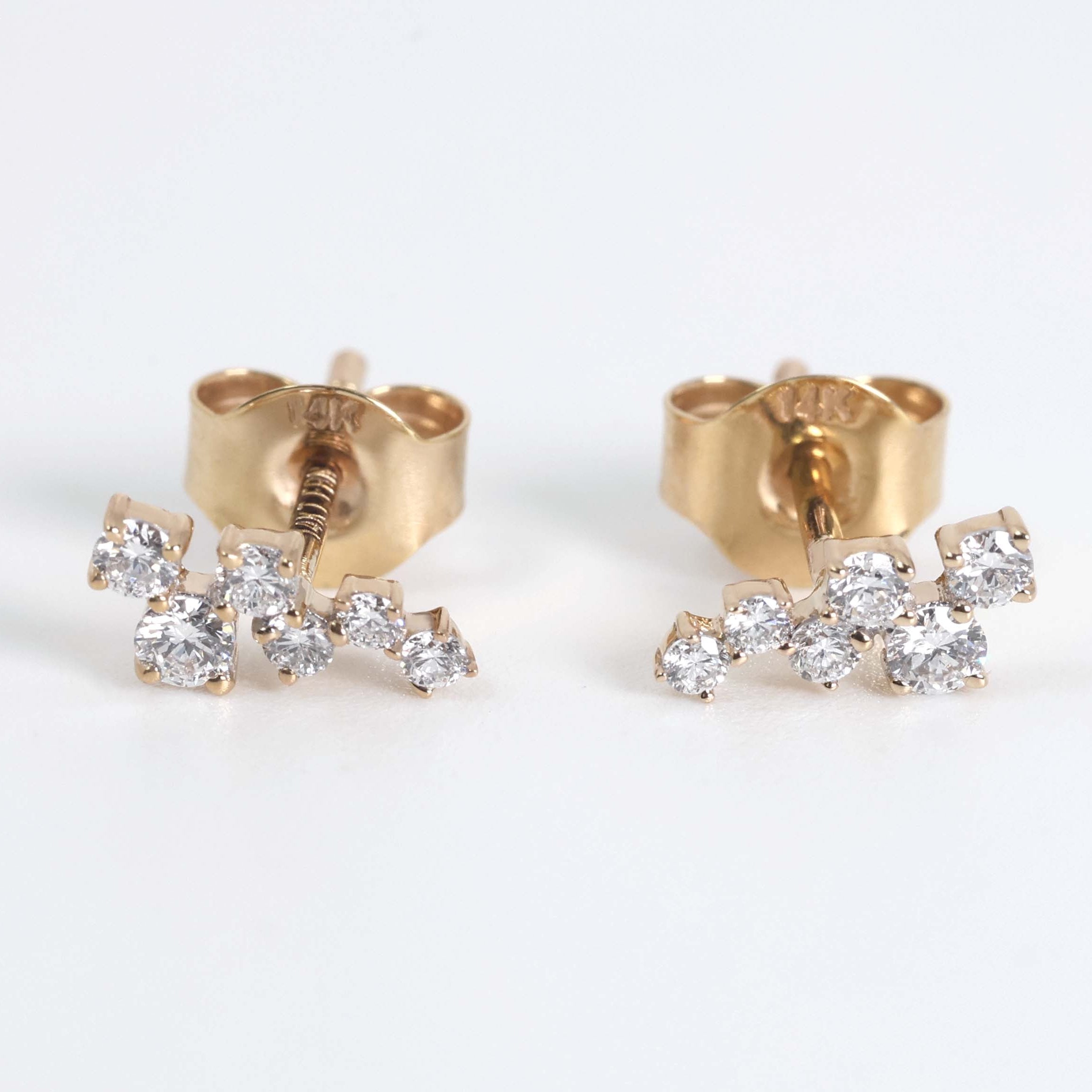 Aretes climbers con diamantes lab grown (0.25 ctw) que se deslizan suavemente sobre la oreja, creando un destello sutil y moderno. Su diseño ligero y atemporal aporta un brillo delicado que acompaña cada movimiento con elegancia y frescura.
