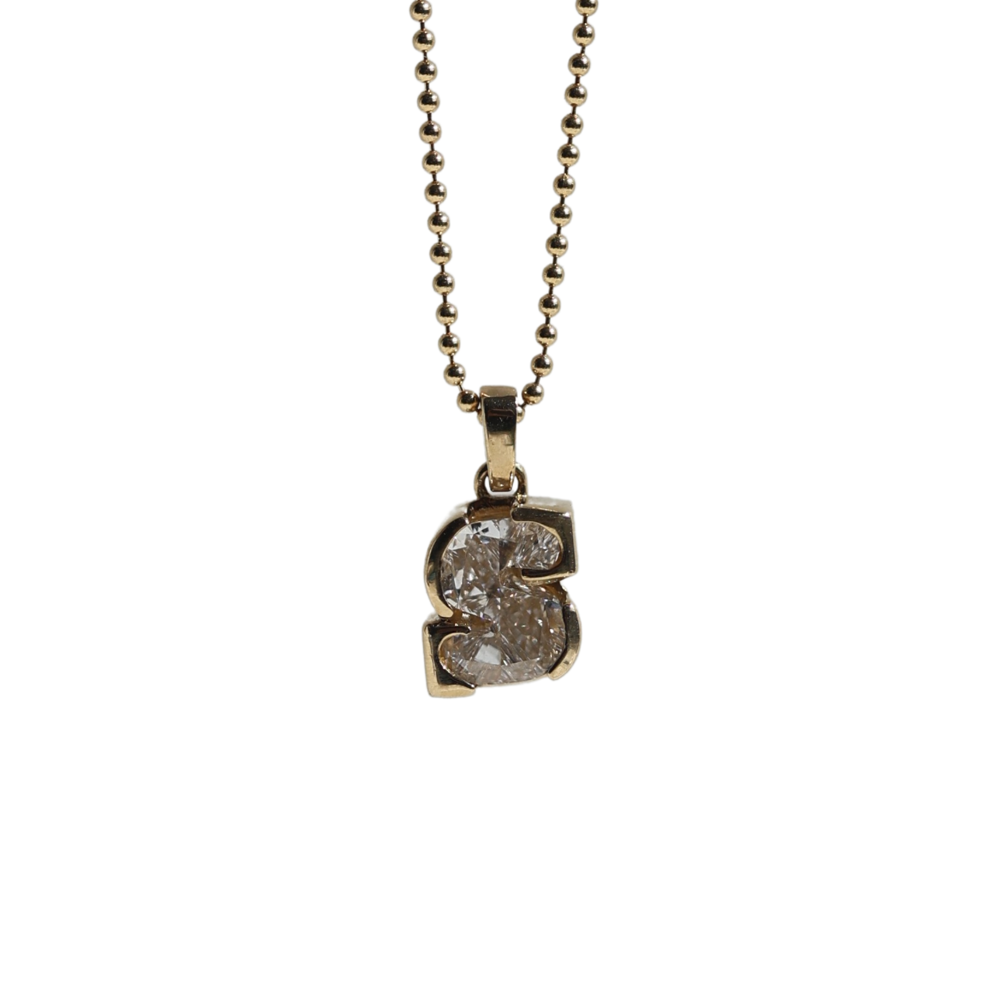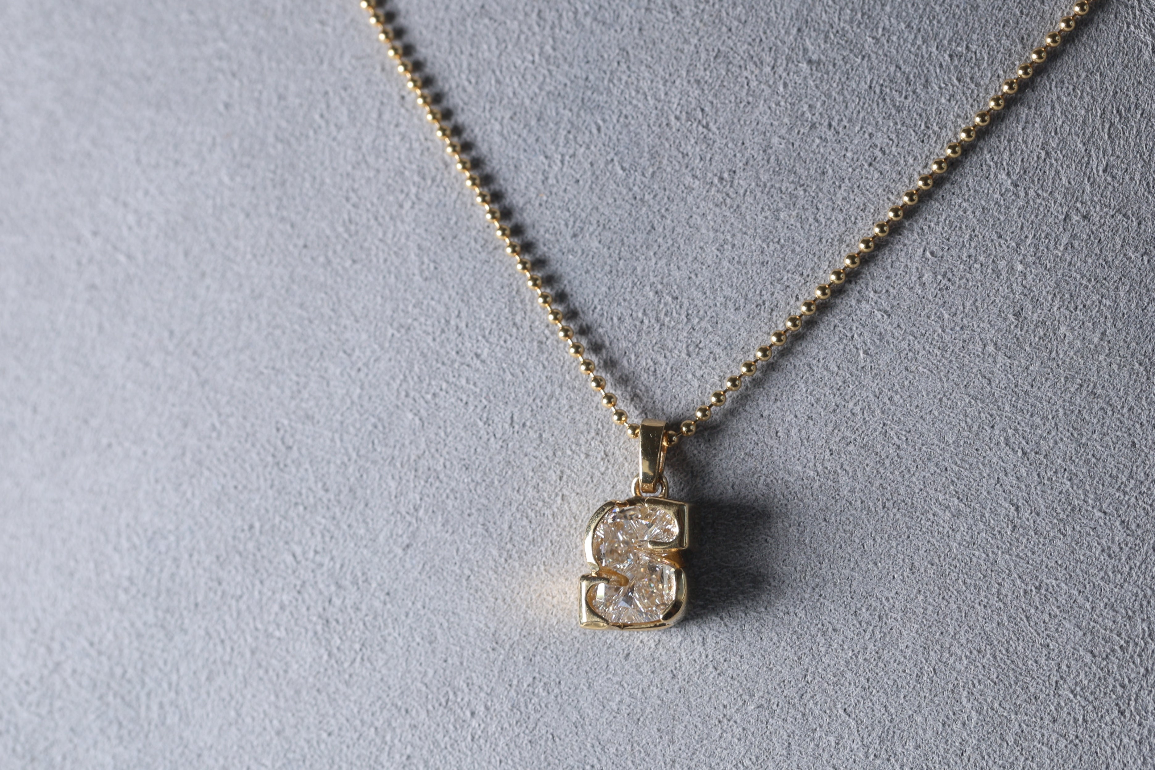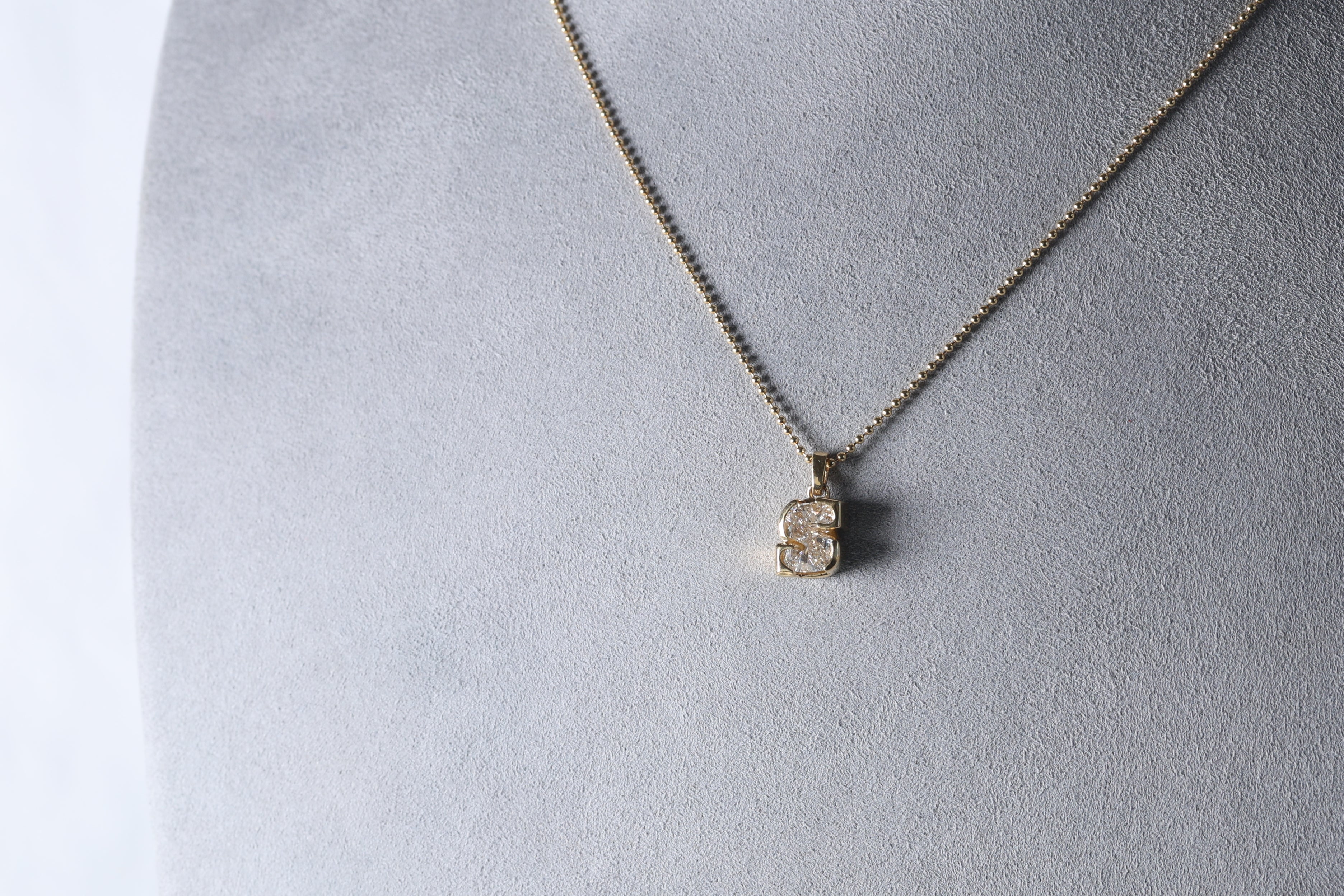 Dije de un solo diamante (single cut) Lab Grown de letra "S" en Oro Amarillo 18k