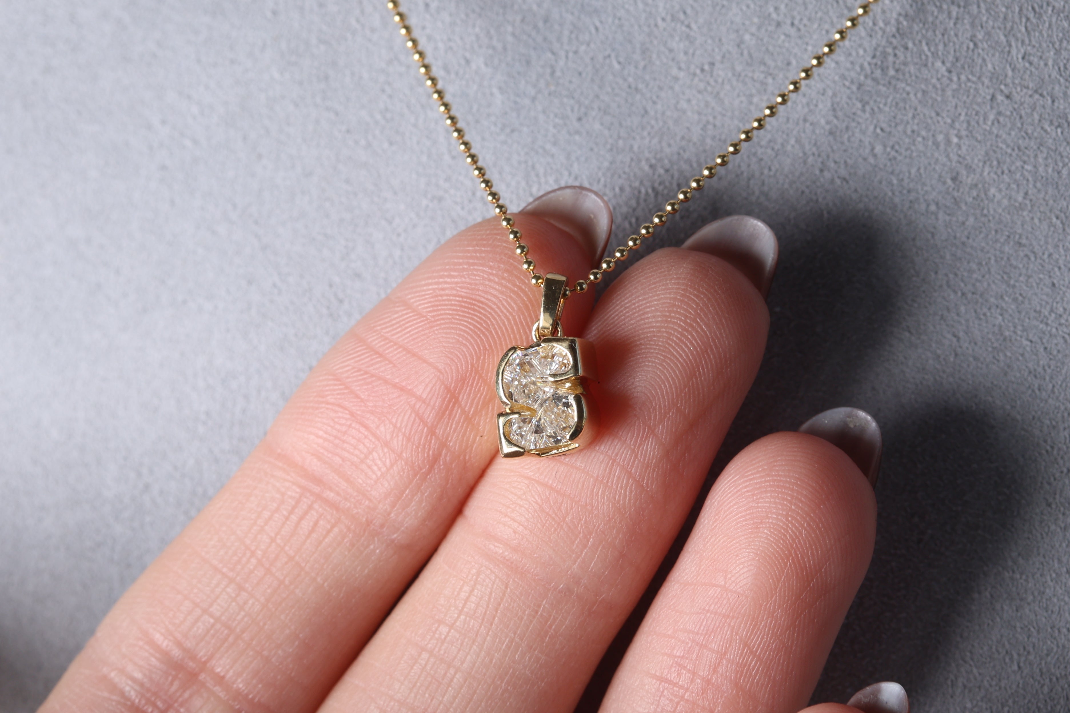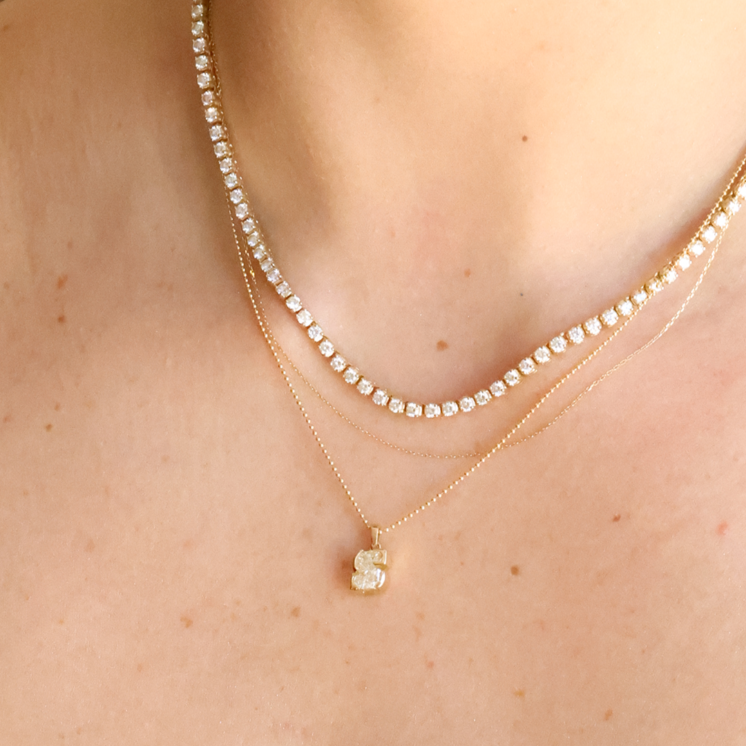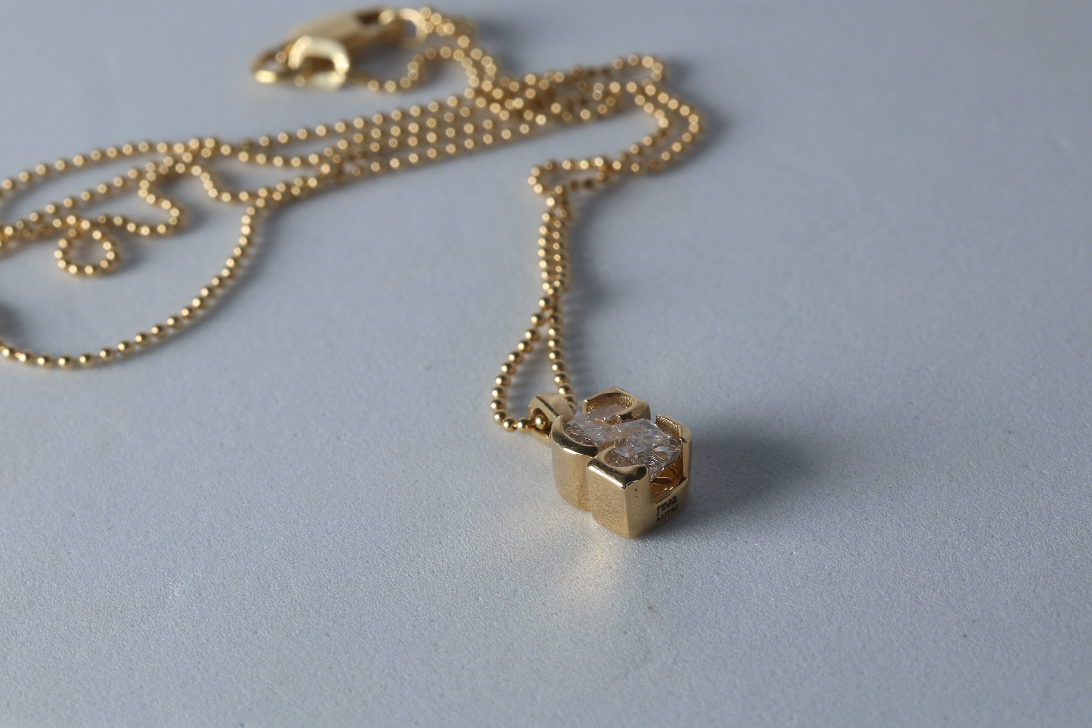 Dije de un solo diamante (single cut) Lab Grown de letra "S" en Oro Amarillo 18k