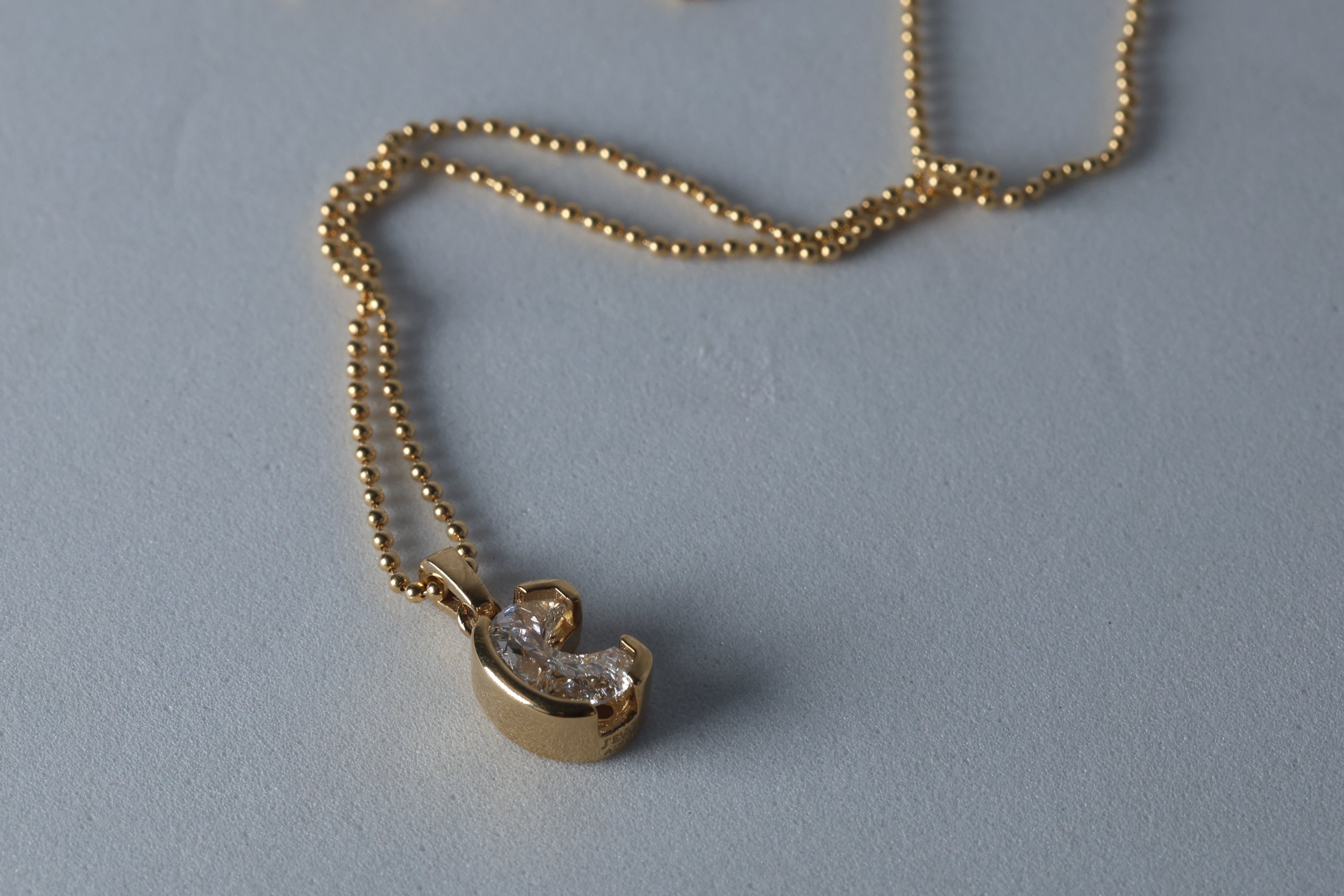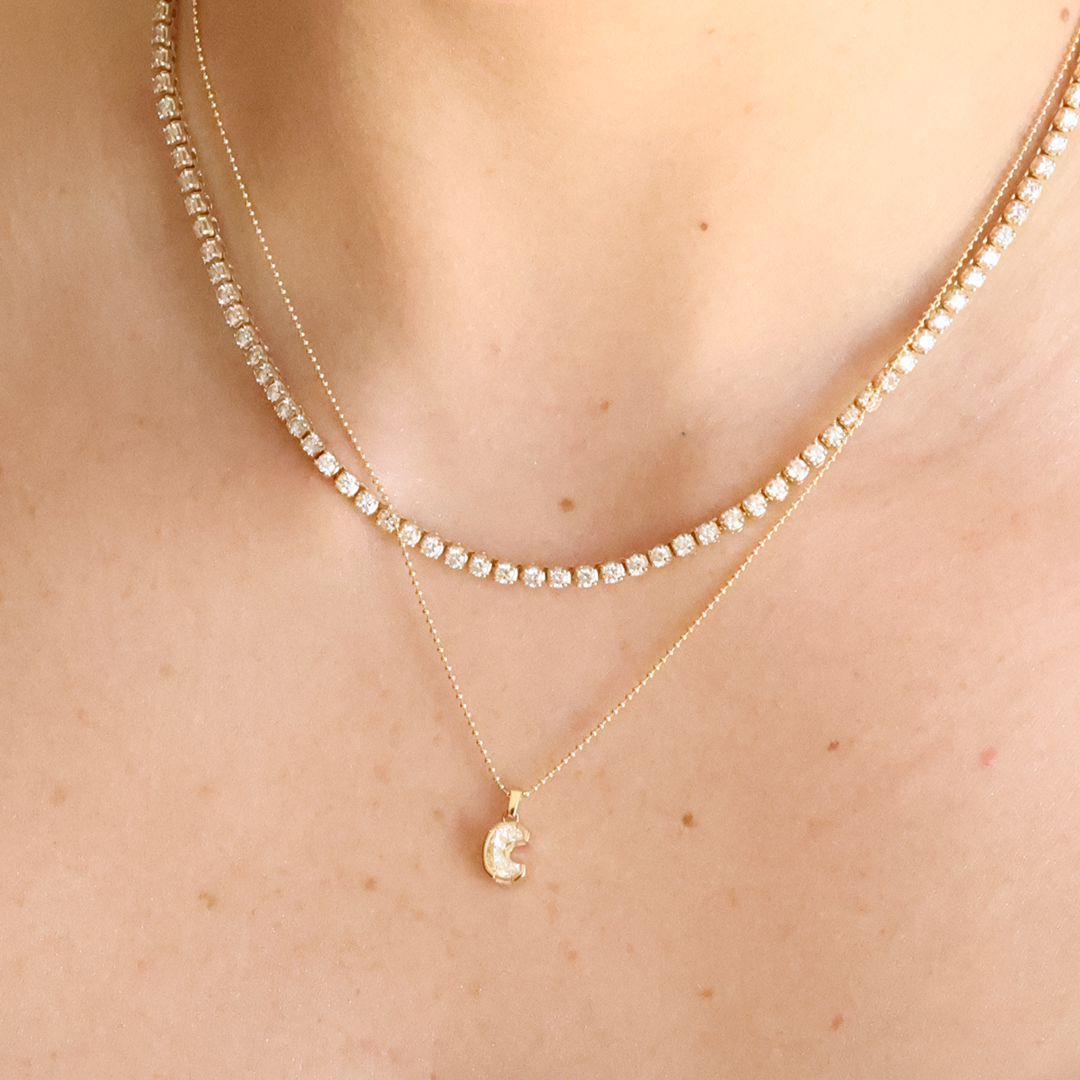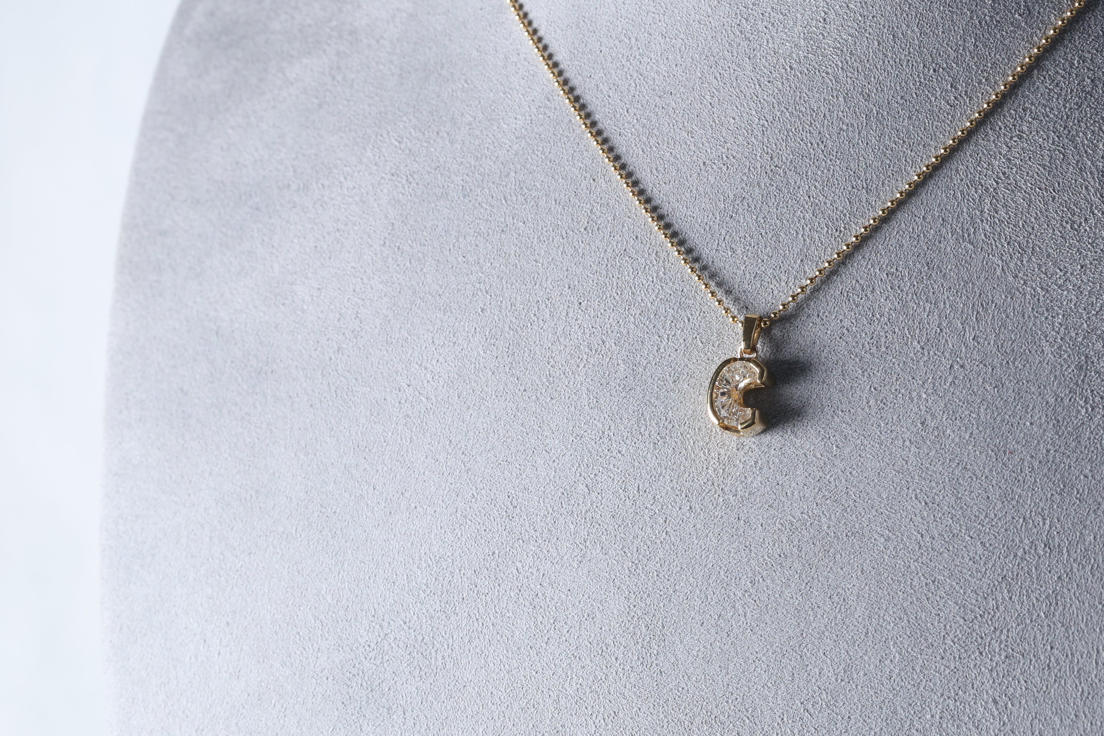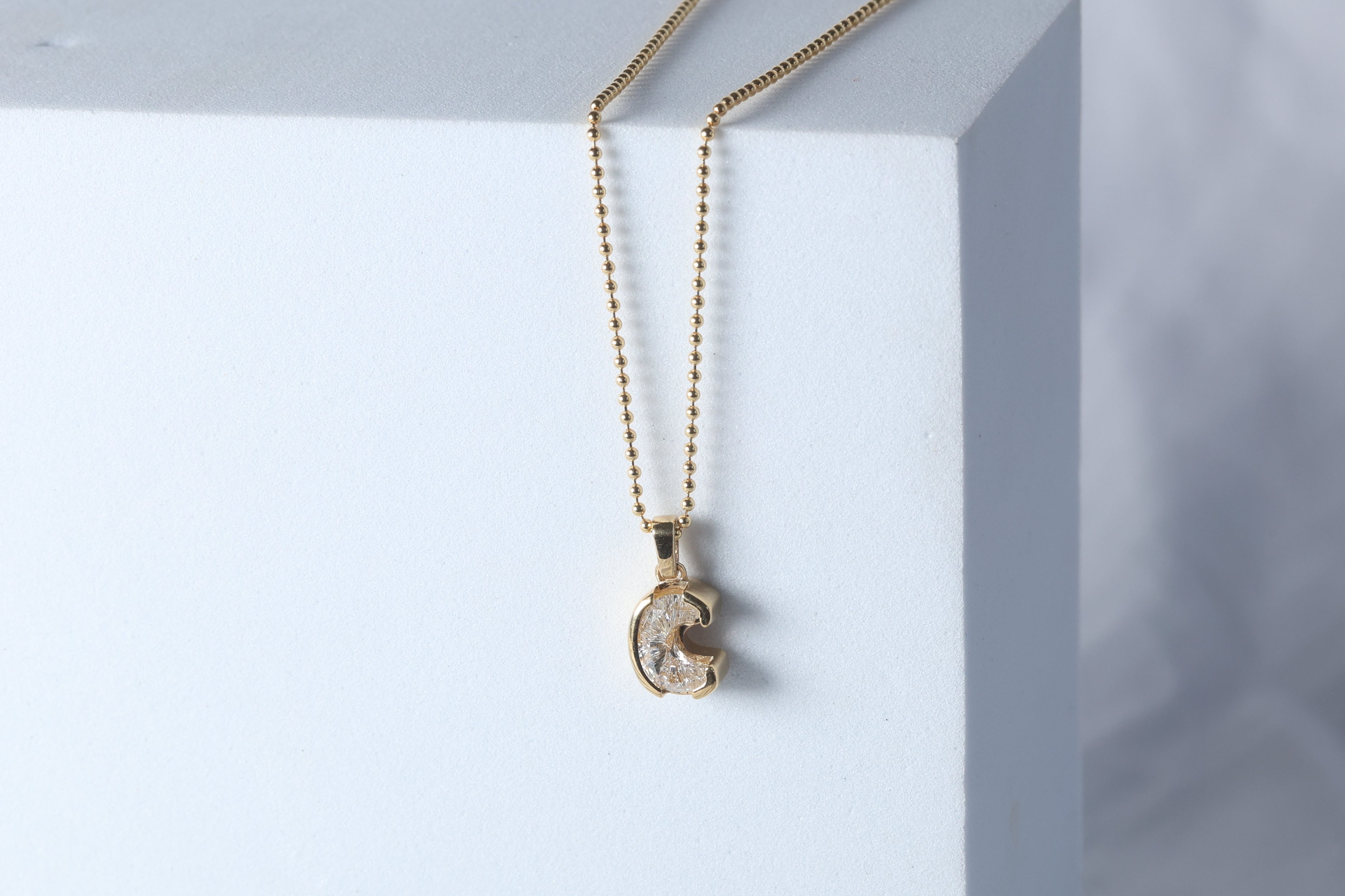 Dije de un solo diamante (single cut) Lab Grown de letra "C" en Oro Amarillo 18k