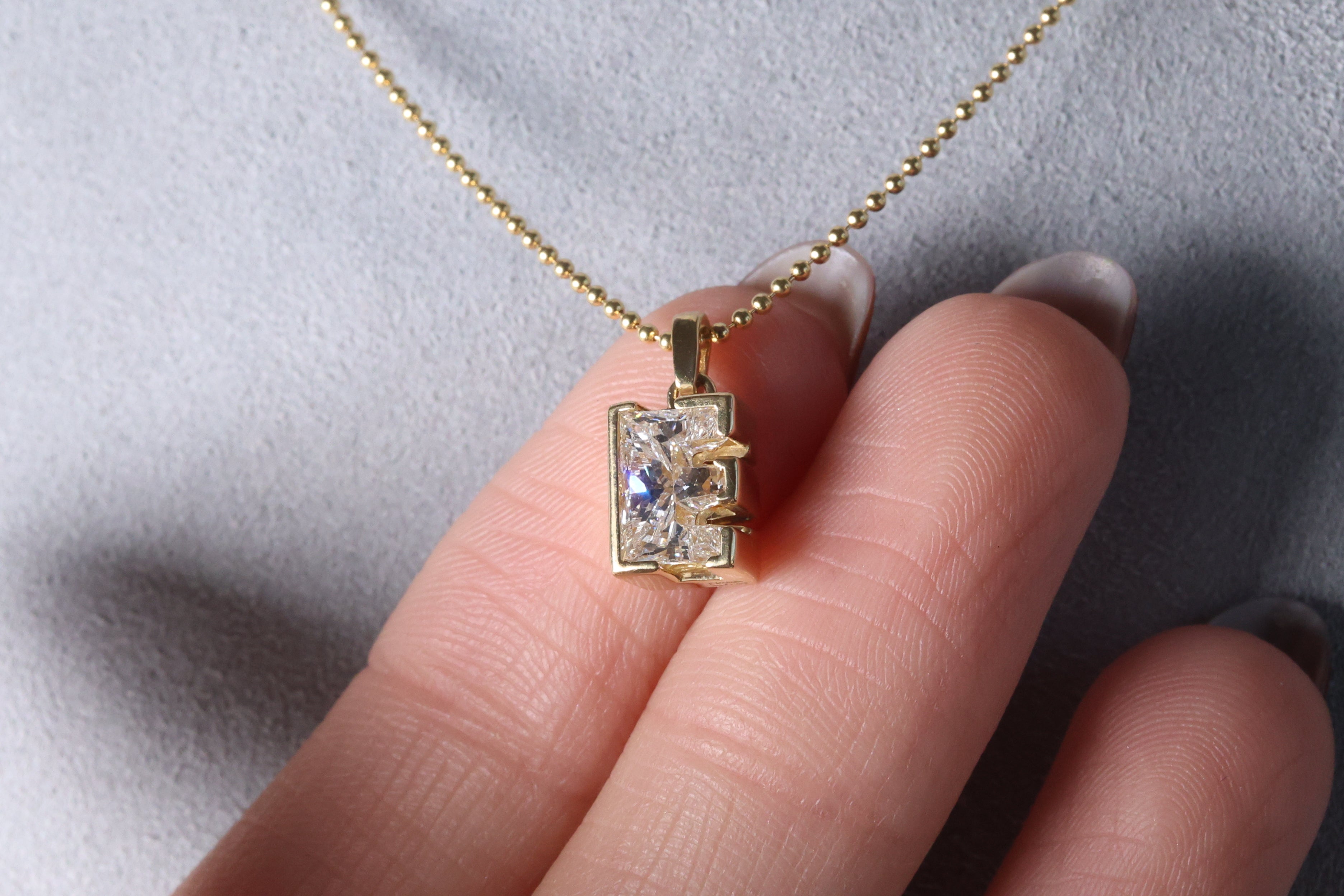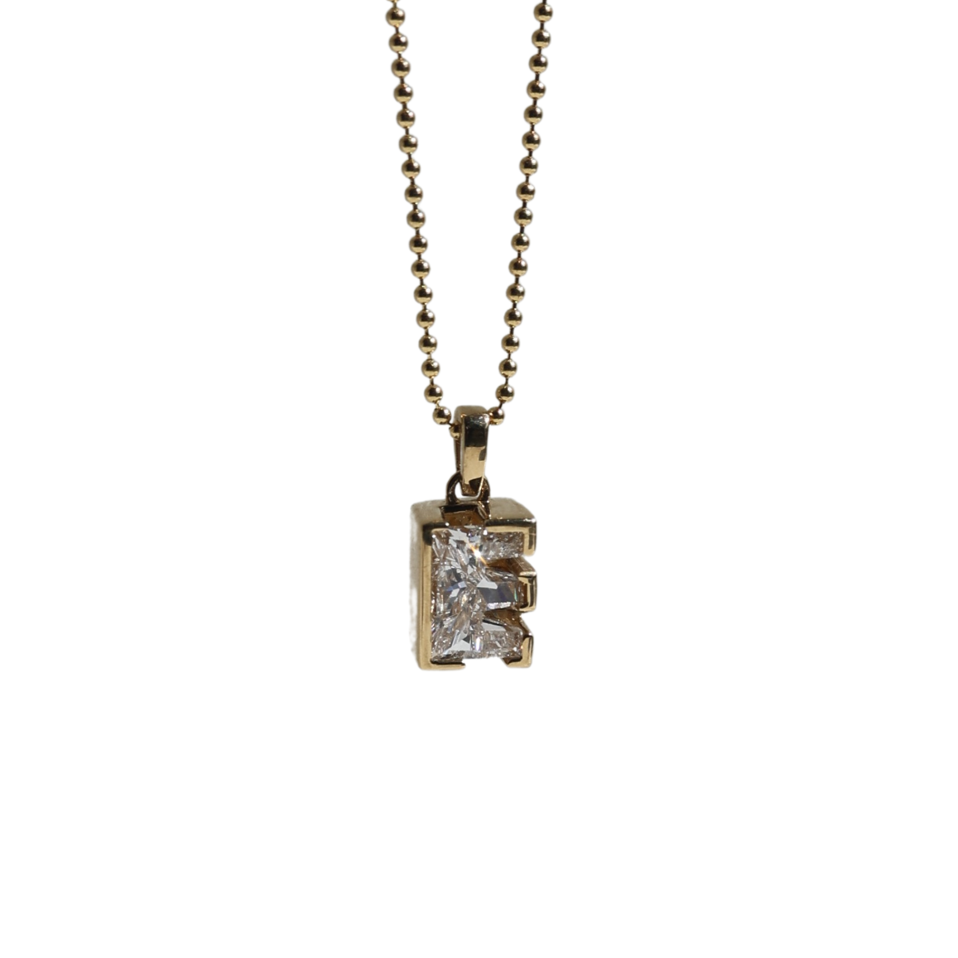 Dije de un solo diamante (single cut) Lab Grown de letra "E" en Oro Amarillo 18k