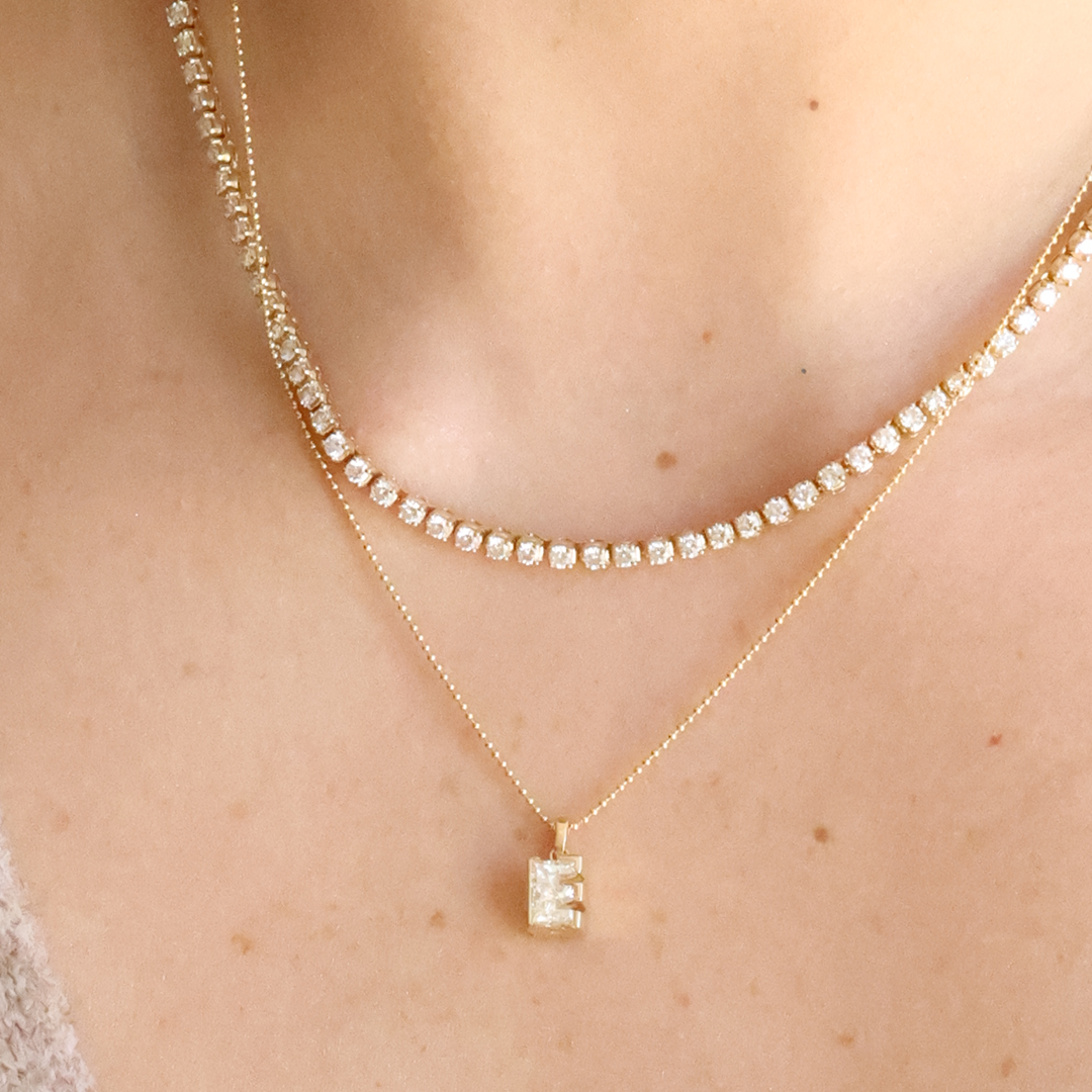 Dije de diamante letra "E" en Oro Amarillo 18k