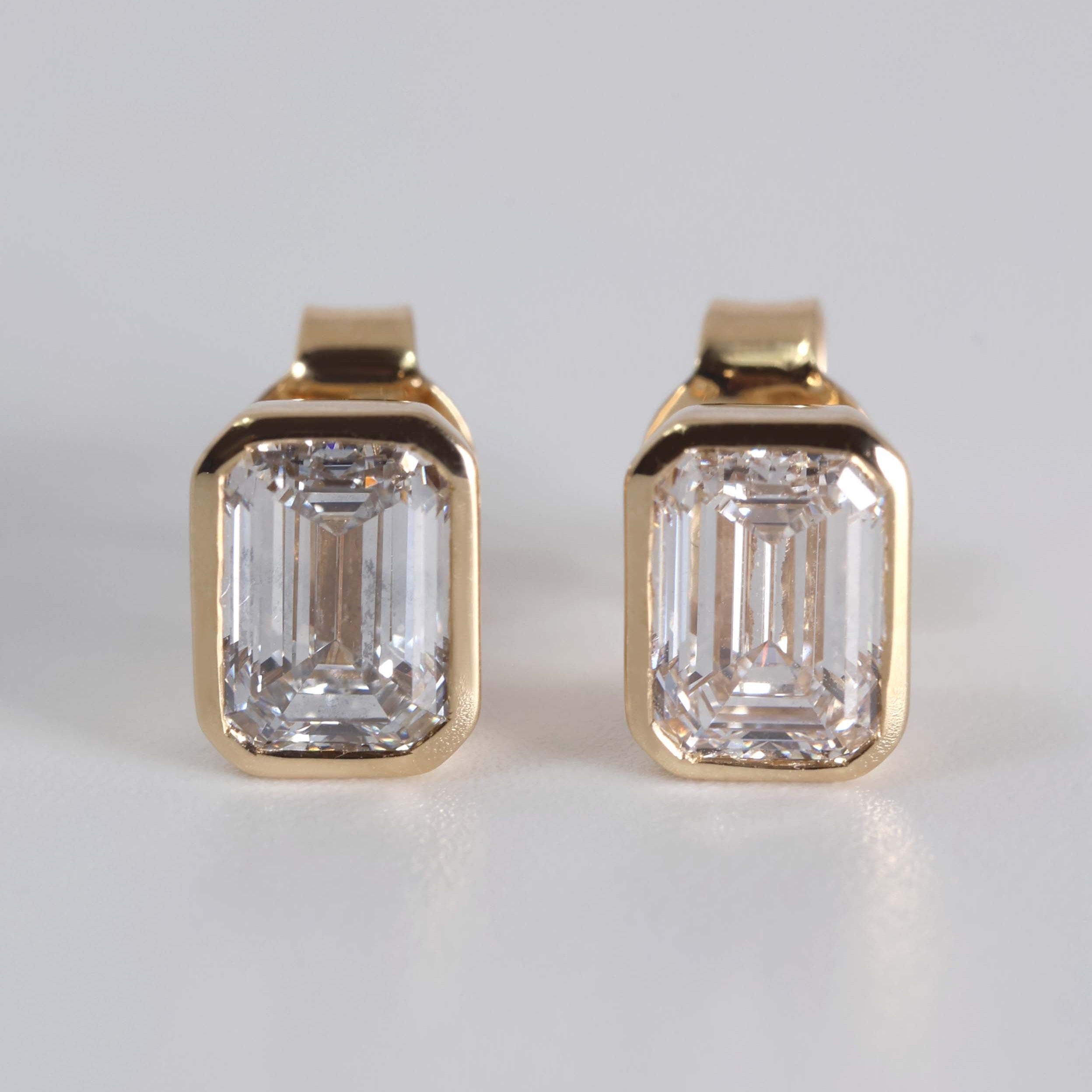 Studs biselados con diamantes lab grown corte emerald (2.00 ctw) que irradian un brillo suave y envolvente desde su elegante montura. Su diseño moderno y atemporal aporta un destello sofisticado, creando una pieza que destaca con delicadeza y presencia en cualquier ocasión.