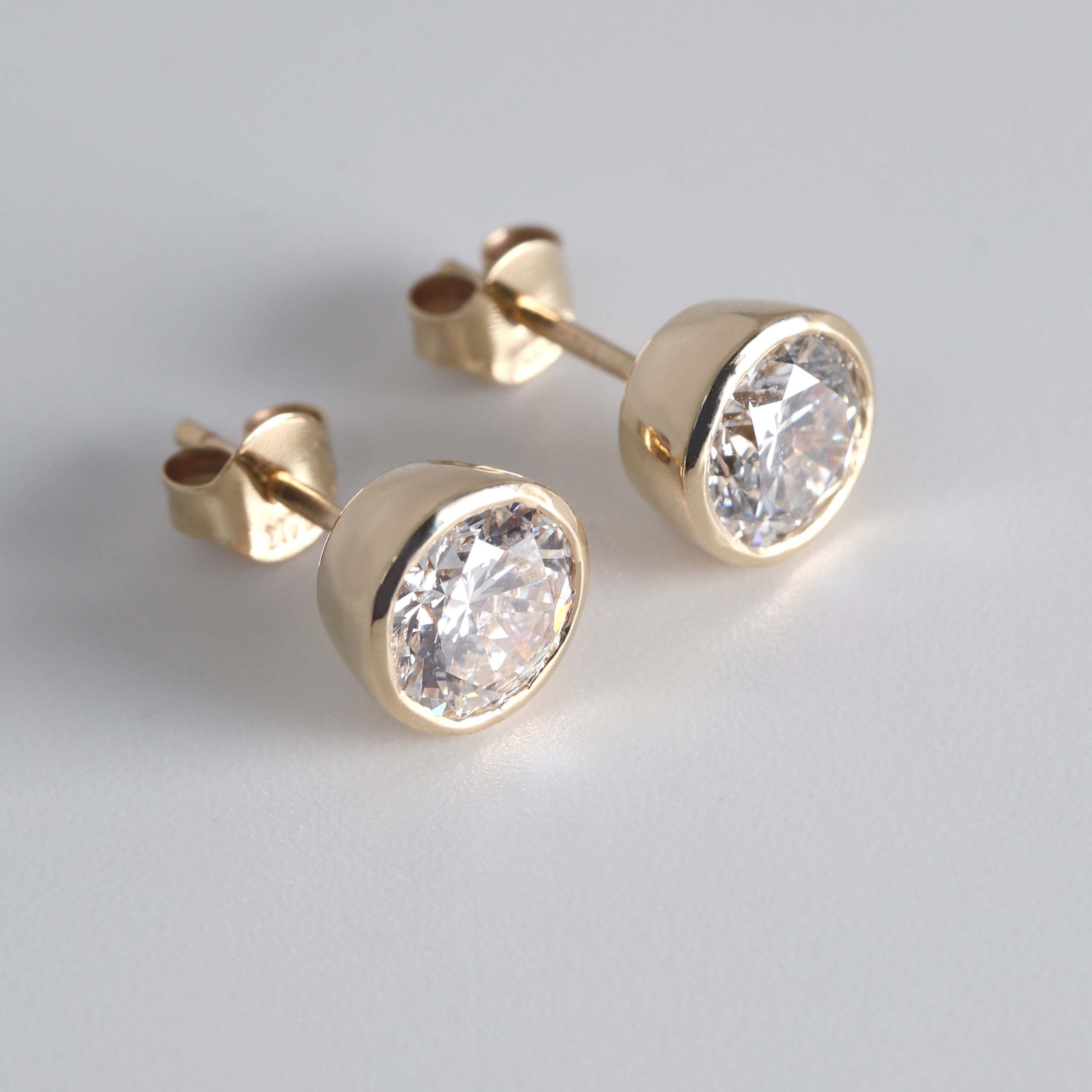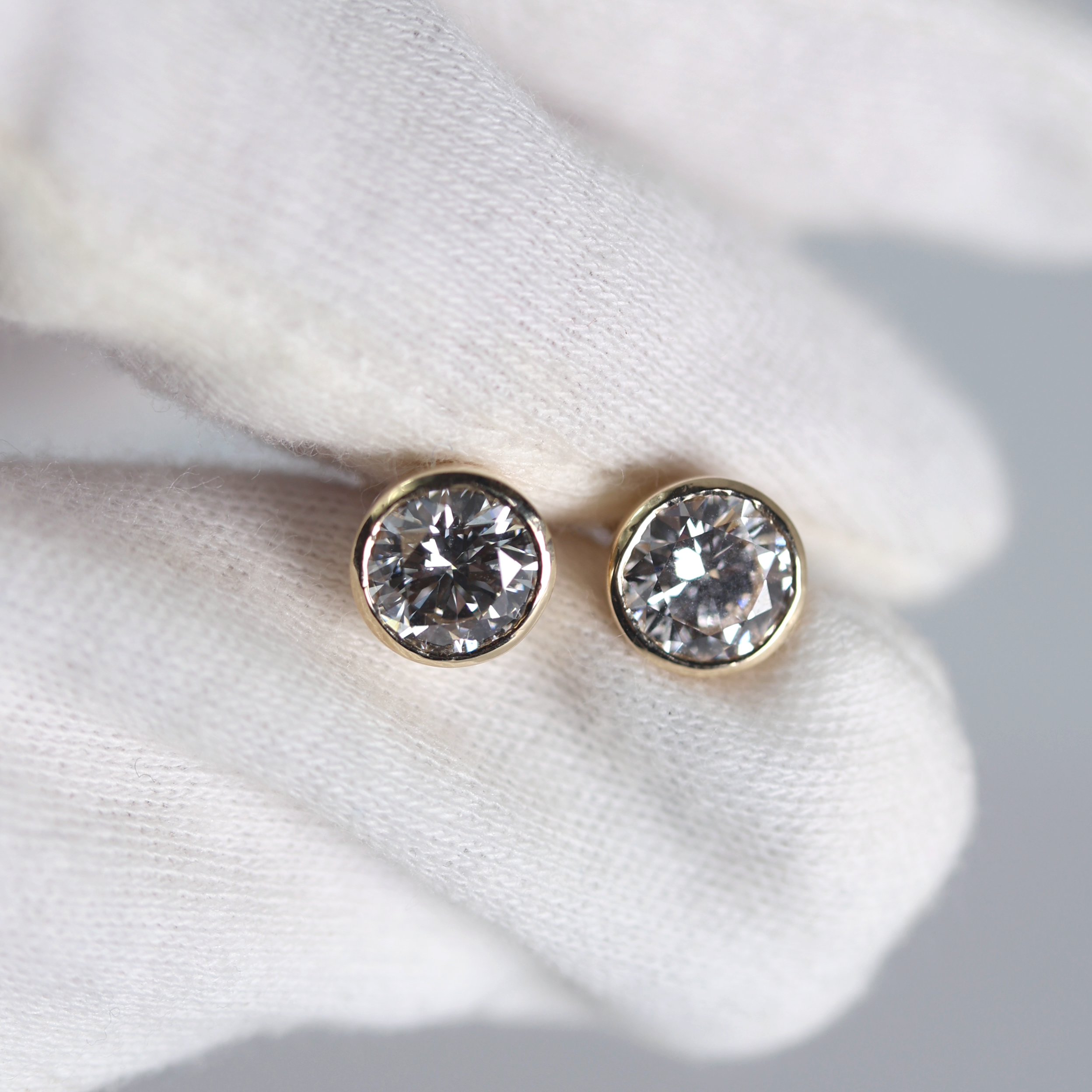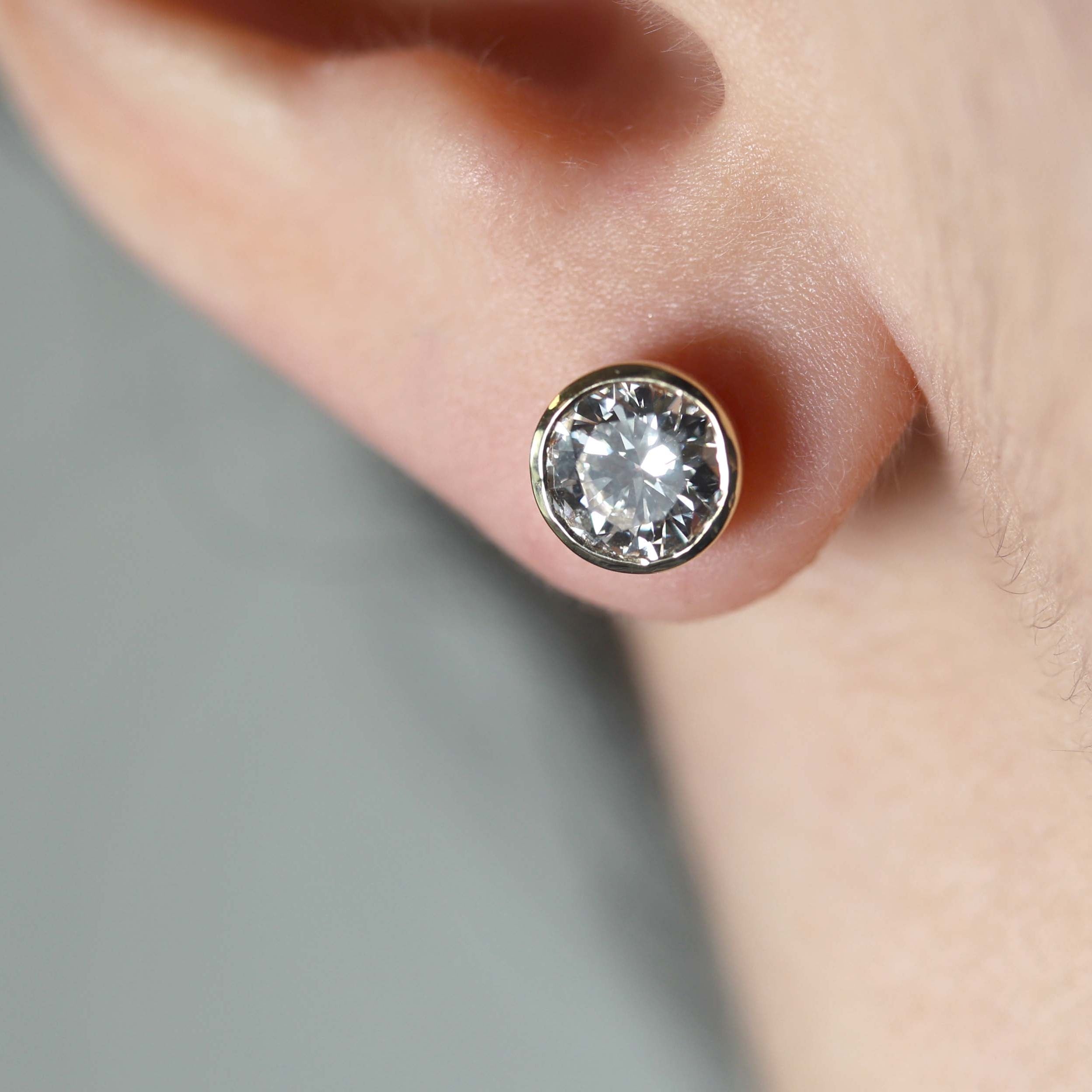 Studs biselados con diamantes lab grown corte round (2.00 ctw) que irradian un brillo suave y envolvente desde su elegante montura. Su diseño moderno y atemporal aporta un destello sofisticado, creando una pieza que destaca con delicadeza y presencia en cualquier ocasión.