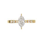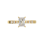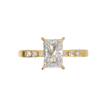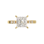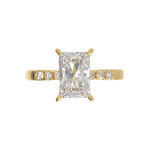 Disfruta del resplandor con nuestro anillo de compromiso estilo pavé 3, 2, 1 con 4 uñas. Disponible en oro de 14k o 18k en tonos amarillo, blanco o rosa, esta montura es la perfecta representación de brillo e interés. Hecho a mano, su tiempo de fabricación es de 4 a 6 semanas, asegurando la calidad y detalle en cada pieza. (El precio reflejado es por la montura elegida y no incluye el diamante central)