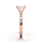 Disfruta del resplandor con nuestro anillo de compromiso estilo pavé 3, 3, 2, 2, 1, 1 con 4 uñas. Disponible en oro de 14k o 18k en tonos amarillo, blanco o rosa, esta montura es la perfecta representación de brillo e interés. Hecho a mano, su tiempo de fabricación es de 4 a 6 semanas, asegurando la calidad y detalle en cada pieza. (El precio reflejado es por la montura elegida y no incluye el diamante central)