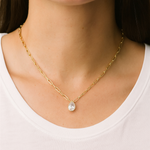 Un equilibrio entre lo clásico y lo contemporáneo. Este collar de oro amarillo de 14k sostiene un diamante lab grown corte pera, símbolo de pureza y movimiento. Su cadena paper clip aporta un aire moderno y elegante, convirtiéndolo en un esencial atemporal con un brillo que trasciende tendencias.
