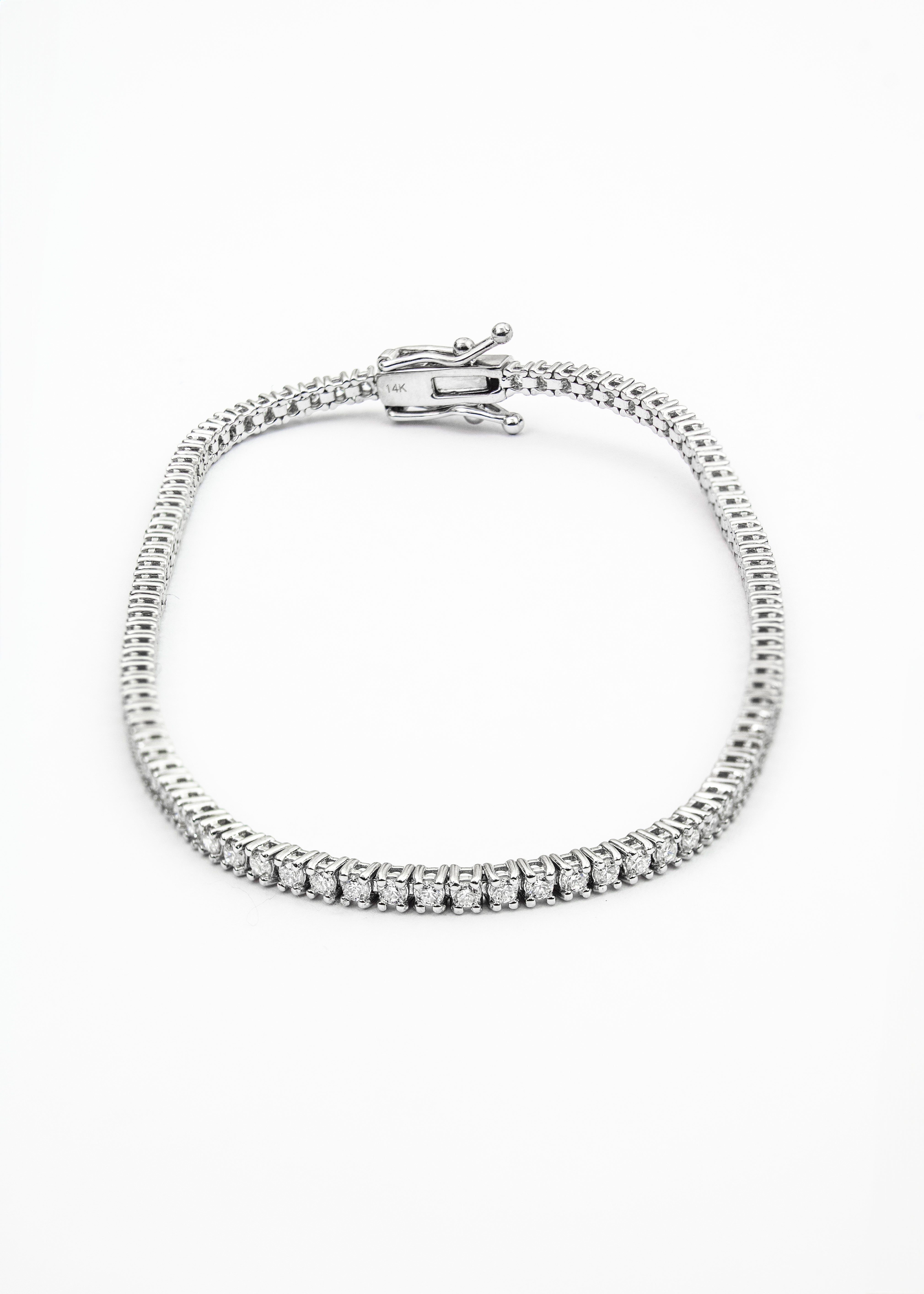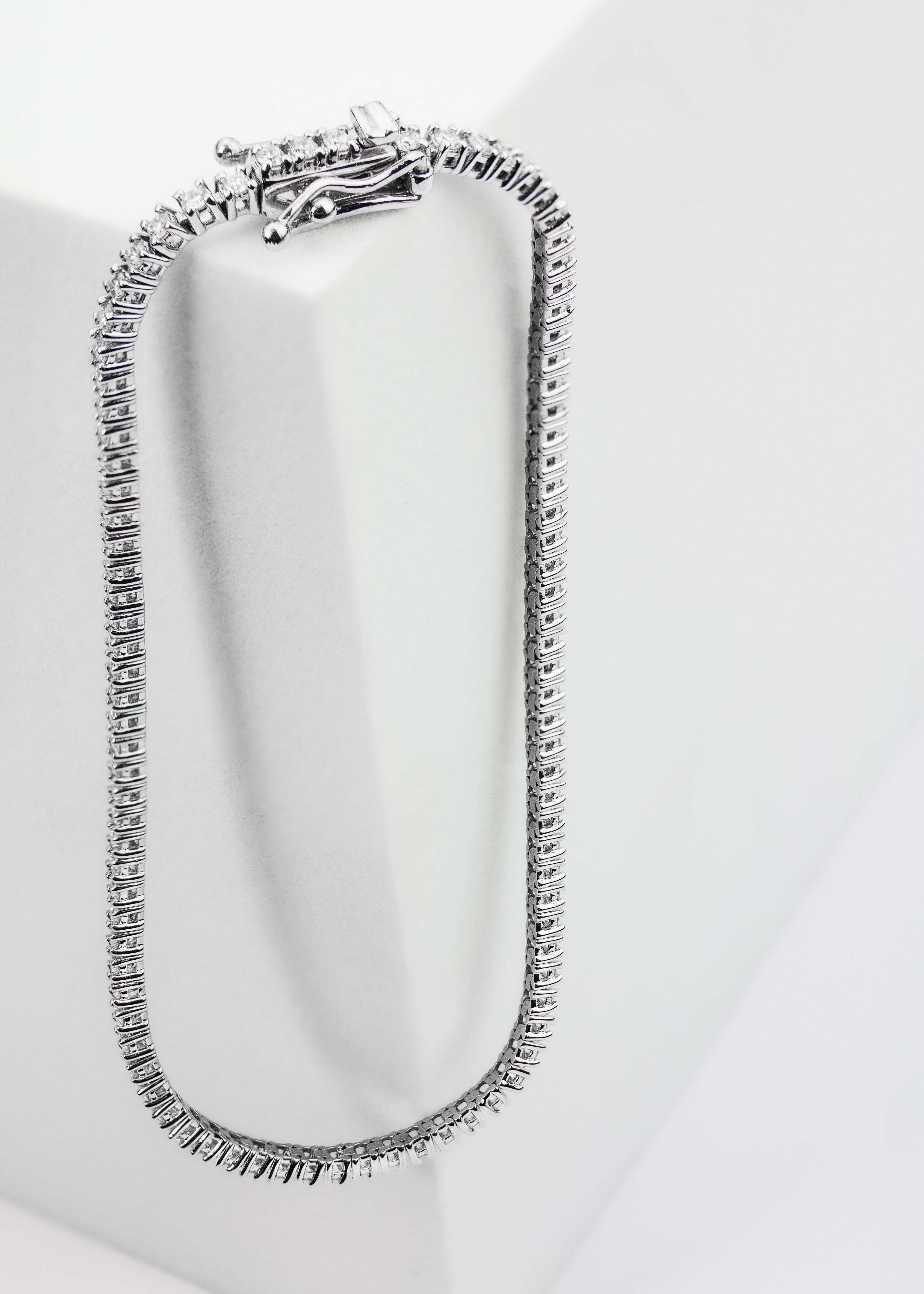 Este tennis bracelet está formado por una delicada fila de diamantes naturales engastados con precisión, que rodean la muñeca con un resplandor continuo, elegante y perfectamente equilibrado.